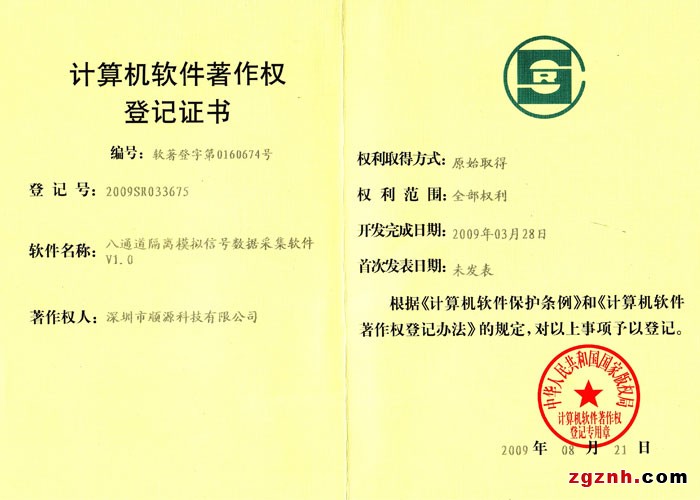 發(fā)證機(jī)構(gòu):   中華人民共和國國家版權(quán)局 發(fā)證時間 :   2009-08-21