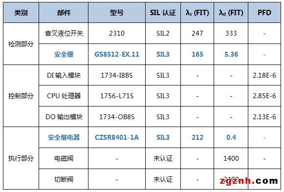 為了達到要求,選用了下表中的相關(guān)儀表來構(gòu)建SIS系統(tǒng)。