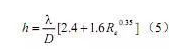 熱量傳遞系數(shù)h與流體的熱傳導(dǎo)率、動(dòng)力學(xué)粘度、流體速度和熱線直徑有關(guān),表示為: