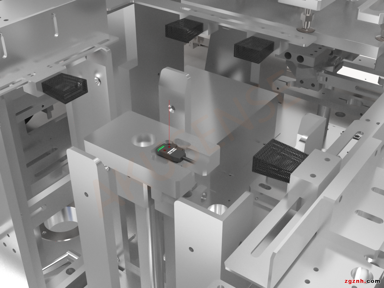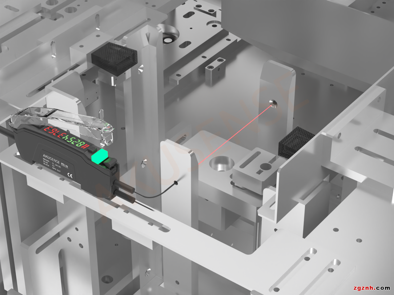 1、該工位兩側(cè)安裝小型光電對(duì)射開關(guān)PTJ系列,僅有尾指大小,可安裝于上料位的緊湊空間內(nèi)
