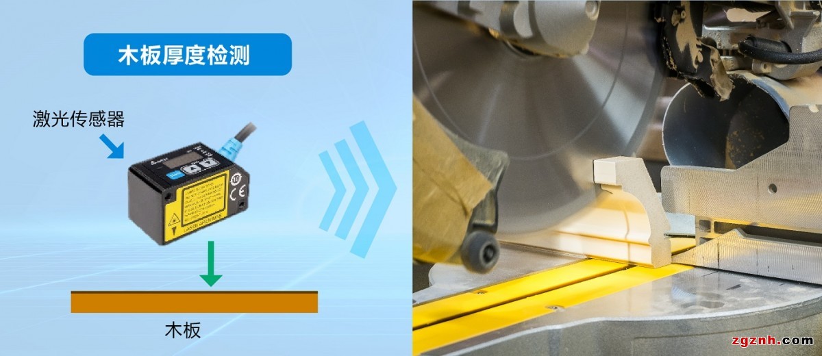 尺寸檢測(cè):用于木工開料機(jī),與實(shí)際機(jī)械動(dòng)作相配合測(cè)量木板厚度尺寸,并將數(shù)據(jù)反饋給上位機(jī),并于運(yùn)載過程中自行進(jìn)入節(jié)能待機(jī)狀態(tài)。