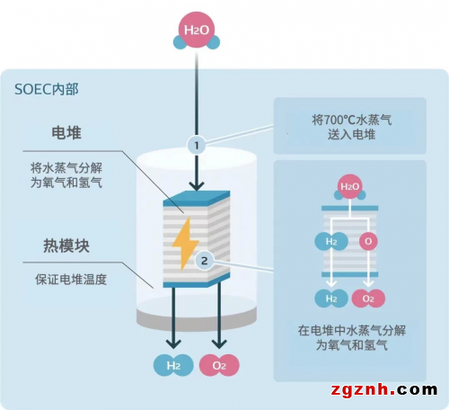在氫的[制造]方面,電裝將使用SOEC在工廠內(nèi)制造氫氣,其具備將內(nèi)部溫度恒定在700℃左右的高溫下,通過電解高效制氫的特點。融合了自身在汽車零部件中培育的多種技術(shù),包括合理控制內(nèi)部溫度的熱管理技術(shù)、在高溫下高效電解的陶瓷應(yīng)用技術(shù)、以及在設(shè)備內(nèi)回收未反應(yīng)的水蒸氣,進行再循環(huán)的噴射器技術(shù)*3。