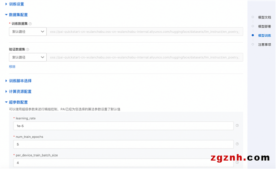 我們可以根據(jù)實(shí)際需求上傳訓(xùn)練集和驗(yàn)證集,調(diào)整超參數(shù),例如learning_rate、sequence_length、train_iters等,如下所示:
