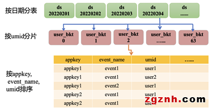根據(jù)查詢特點(diǎn)(每個(gè)查詢只涉及一個(gè)應(yīng)用的有限幾個(gè)事件),按照appkey,event_name建立聚簇索引(Clustering Key)