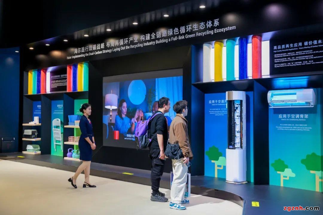 除了綠色建筑外, 海爾智家構(gòu)建的行業(yè)第一個(gè)家電“回收—拆解—再生—再利用”循環(huán)閉環(huán)體系,也在AWE上首次亮相。
