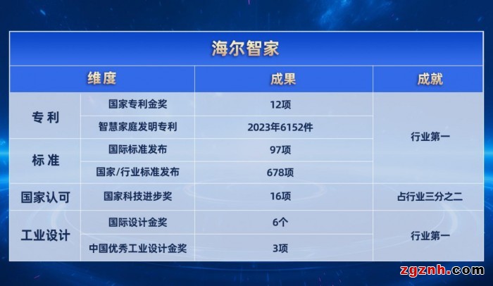標(biāo)準(zhǔn)數(shù)量方面,海爾智家國家/行業(yè)標(biāo)準(zhǔn)發(fā)布678項,國際標(biāo)準(zhǔn)發(fā)布97項,均為行業(yè)最多;專利數(shù)量方面,海爾智家榮獲國家專利金獎12項,行業(yè)第一;2023年海爾智慧家庭發(fā)明專利6152件,位居行業(yè)第一;工業(yè)設(shè)計方面,海爾智家擁有6個國際設(shè)計金獎,3項中國優(yōu)秀工業(yè)設(shè)計金獎,行業(yè)最多;國家認可方面,海爾智家共獲得16項國家科技進步獎,占行業(yè)三分之二。