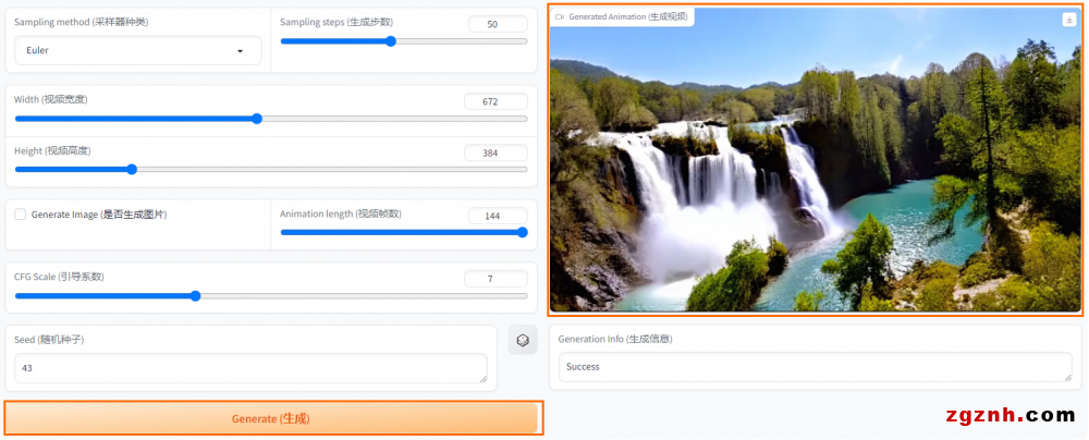 4. 單擊Generate(生成),等待一段時間后,即可在右側查看或下載生成的視頻。