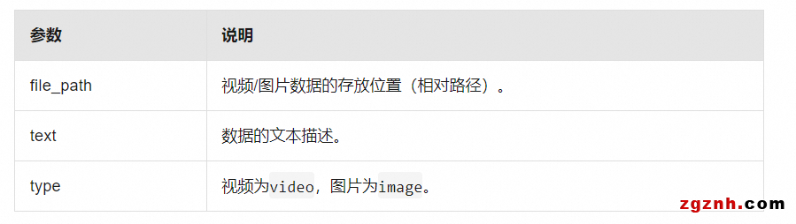 其中,JSON文件數(shù)據(jù)格式和參數(shù)說明如下。