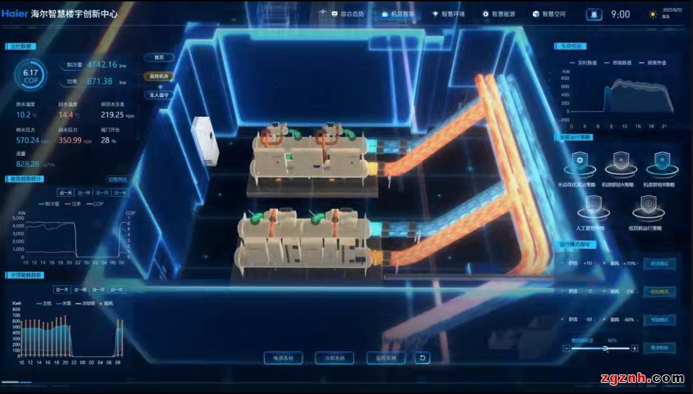 在海爾生態(tài)創(chuàng)新中心項(xiàng)目中,海爾智慧樓宇不僅應(yīng)用了高效節(jié)能的磁氣懸浮中央空調(diào),還將設(shè)備接入了樓宇大腦平臺,做到了高效節(jié)能、智慧管理。具體來看,樓宇大腦平臺通過接入空調(diào)、照明、水、電、安防等18個(gè)子系統(tǒng)、5000+設(shè)備點(diǎn)位,做到了建筑各子系統(tǒng)的在線管理、遠(yuǎn)程控制。同時(shí),平臺還可通過設(shè)備能耗數(shù)據(jù)、運(yùn)行信息等輸出最優(yōu)節(jié)能策略,從管理環(huán)節(jié)實(shí)現(xiàn)節(jié)能效率的再度提升。