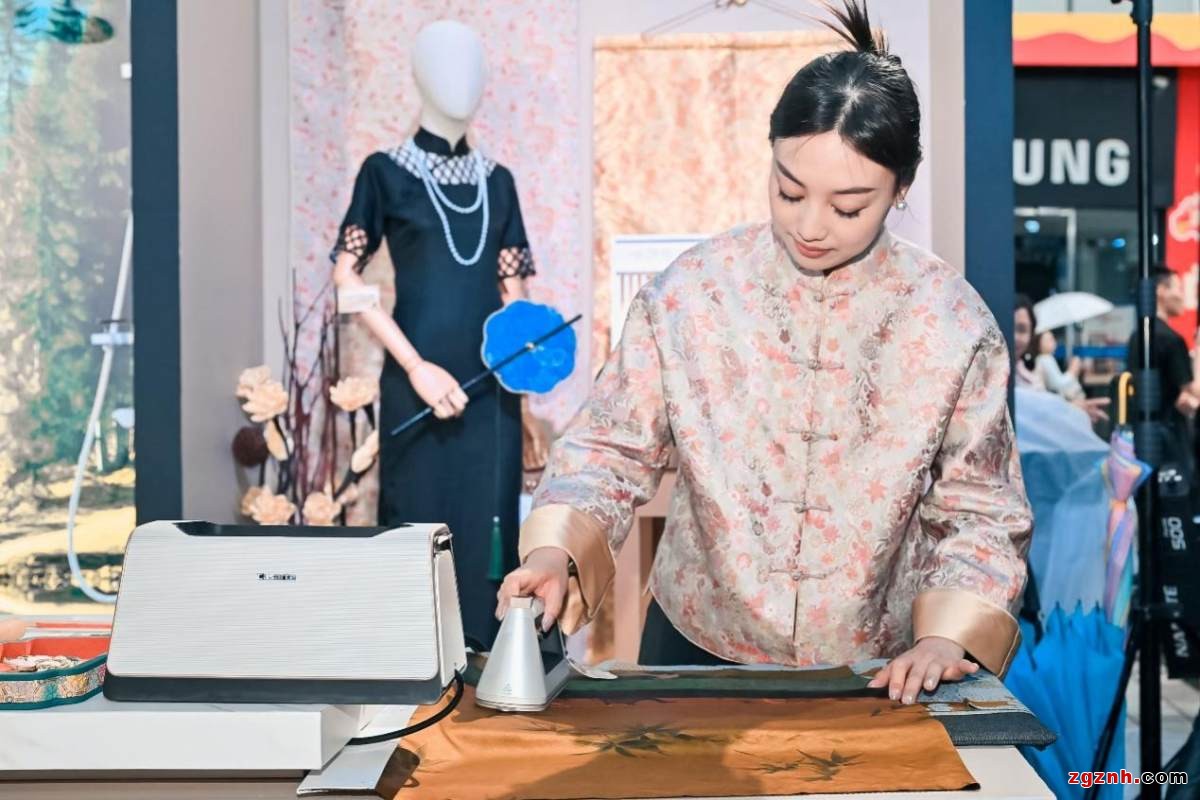 現(xiàn)場(chǎng),南京非物質(zhì)文化遺產(chǎn)金陵旗袍制作技藝的代表性傳承人周祥華體驗(yàn)了卡薩帝鉑金智能熨燙機(jī),用非遺絲綢旗袍展示出其護(hù)理能力。