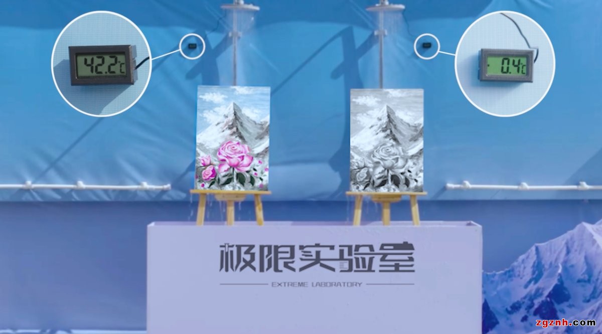 左側(cè)為海爾雙循環(huán)恒溫?zé)崴鞔蜷_花灑秒出42℃恒溫?zé)崴?,感溫畫瞬間變色;