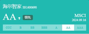 MSCI:海爾智家ESG評(píng)級(jí)升至AA,國內(nèi)行業(yè)最高