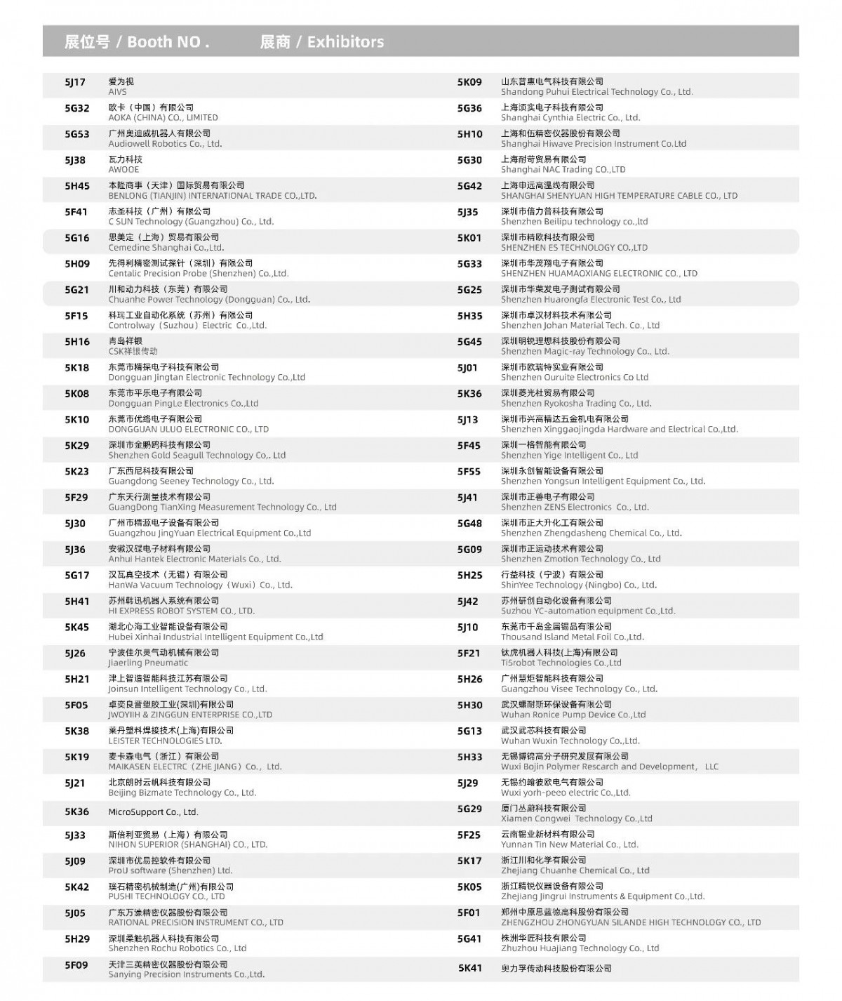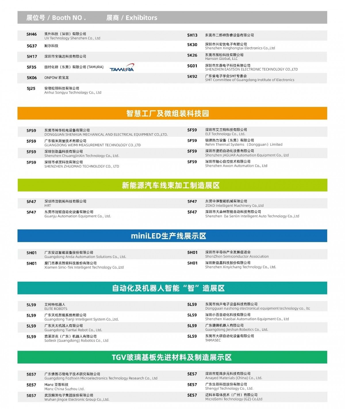部分展商列表