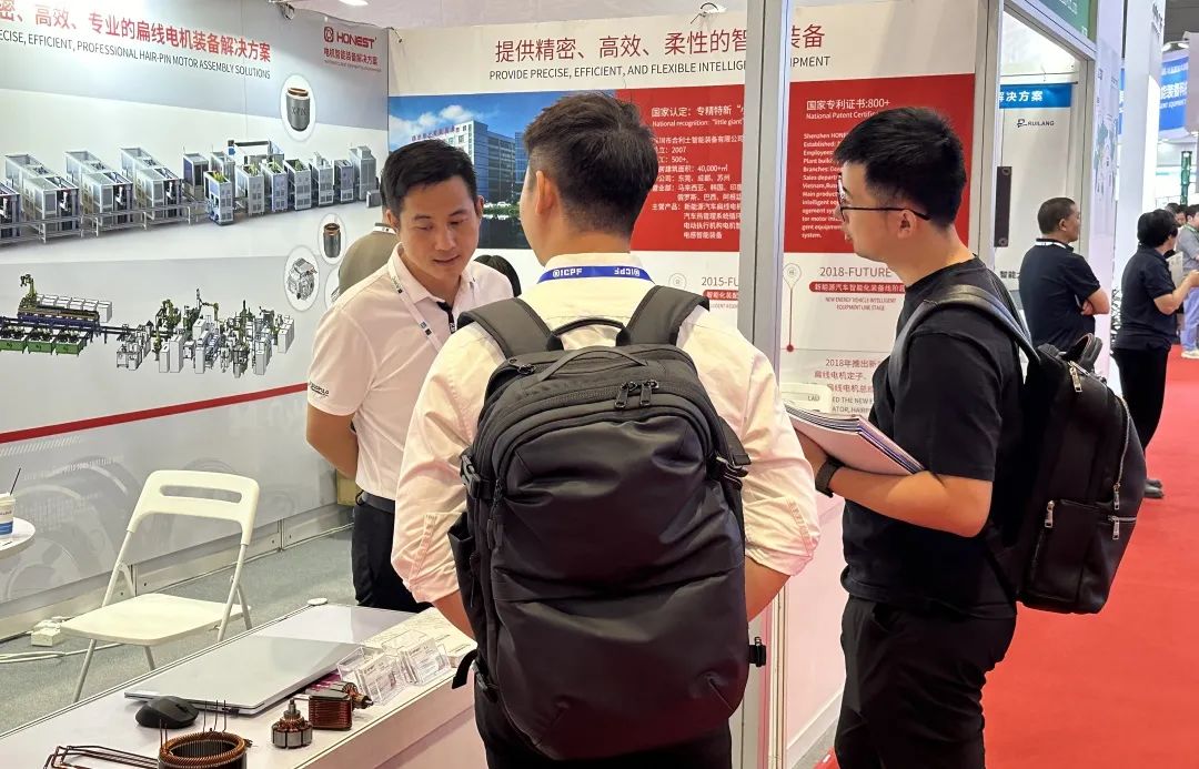 展會現(xiàn)場,合利士展位人頭攢動,通過交流和產品展出吸引了眾多國內外參展商及行業(yè)專家駐足交流。其中,新能源X-pin的焊接方式以及無刷EPS電機分塊定子的固定方式等備受大家關注。