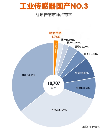 盡管行業(yè)面臨下行壓力,國產(chǎn)品牌明治傳感逆勢崛起,以光電類傳感器為核心突破口,市占率躋身行業(yè)第三,其光電細(xì)分領(lǐng)域國產(chǎn)市占率位列第一。這一現(xiàn)象折射出中國傳感器產(chǎn)業(yè)發(fā)展的新特征與未來趨勢。