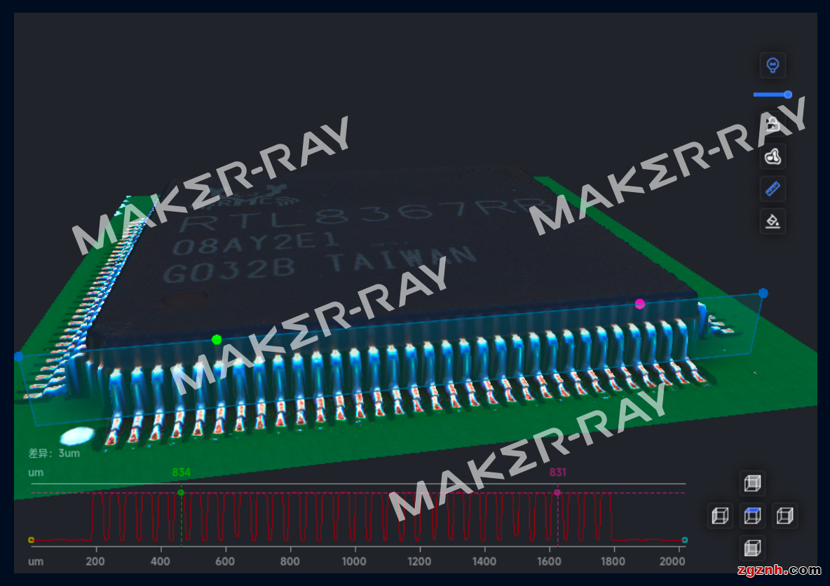 鐳晨科技展出的新一代3D AOI——AIS431,采用側(cè)面多相機(jī)3D成像系統(tǒng),一個(gè)投影搭配4個(gè)相機(jī)。無論是側(cè)面絲印還是遮擋器件,結(jié)合側(cè)面圖像,都能獲取更加全面的成像信息。而AI大模型技術(shù)的加持,能有效消除因器件遮擋、光線反射帶來的成像拉尖、塌陷等,獲取更加真實(shí)的3D成像,讓新一代3D AOI的檢測(cè)能力更上一層樓。