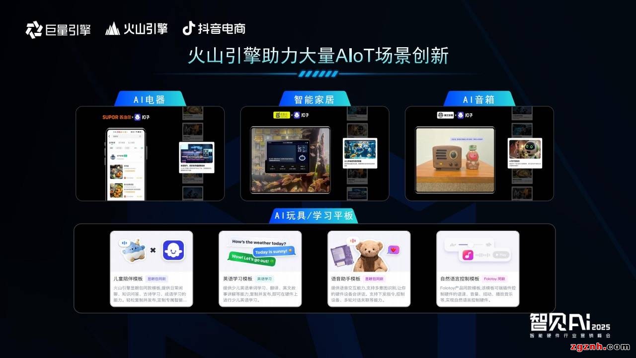 如今,智能硬件的消費(fèi)屬性正在發(fā)生變化,從單一的實(shí)用工具變成智能生活伙伴,為用戶提供智能服務(wù)和情感陪伴。在這一變化下,火山引擎在AI家電、智能家居、AI音響、AI玩具/學(xué)習(xí)平板等大量 AIoT細(xì)分場(chǎng)景進(jìn)行創(chuàng)新,擁有深度的實(shí)踐和技術(shù)積累,助推硬件行業(yè)從“萬(wàn)物互聯(lián)”向“智聯(lián)萬(wàn)物”躍遷,成為AIoT硬件落地的新引擎。