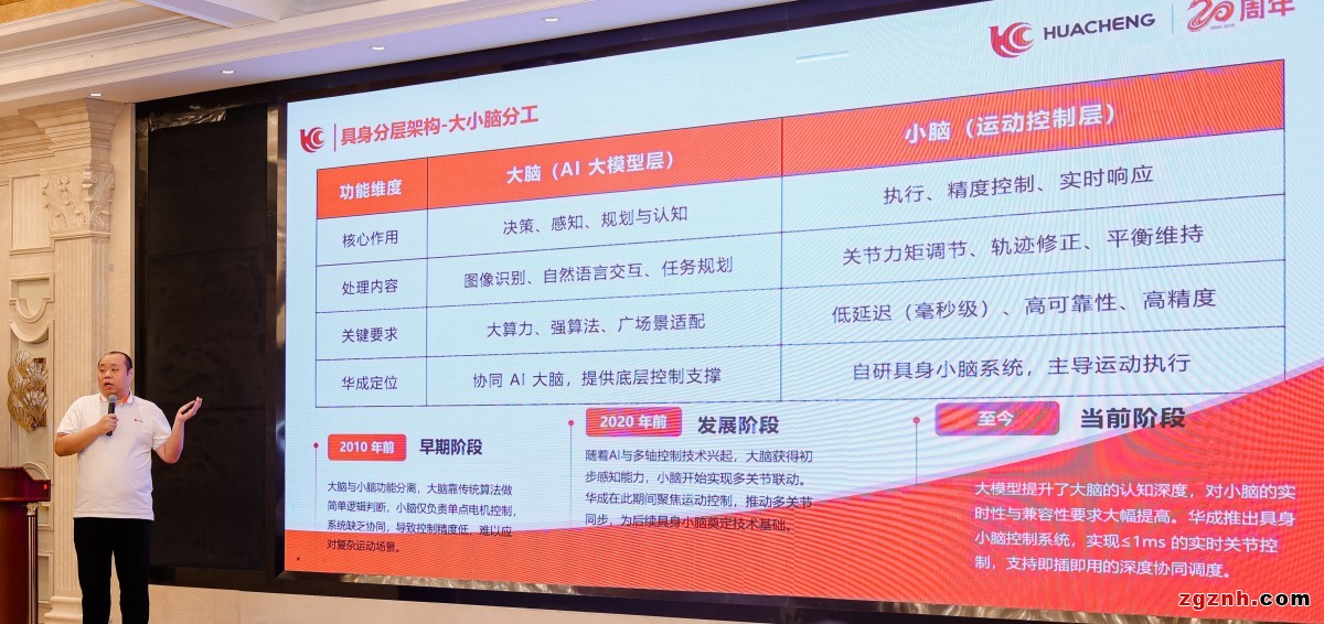 華成工控董事、機(jī)器人行業(yè)總監(jiān)杜曉磊以“深耕具身小腦技術(shù),構(gòu)建控制系統(tǒng)框架”為題,分享了企業(yè)在運(yùn)動(dòng)控制與系統(tǒng)集成方面的積累。目前,華成工控已擁有超千萬(wàn)行源代碼、千項(xiàng)知識(shí)產(chǎn)權(quán),其具身小腦系統(tǒng)適配多家機(jī)械臂廠商,廣泛應(yīng)用于拖動(dòng)示教、力控裝配乃至樂(lè)隊(duì)演奏等多元場(chǎng)景。