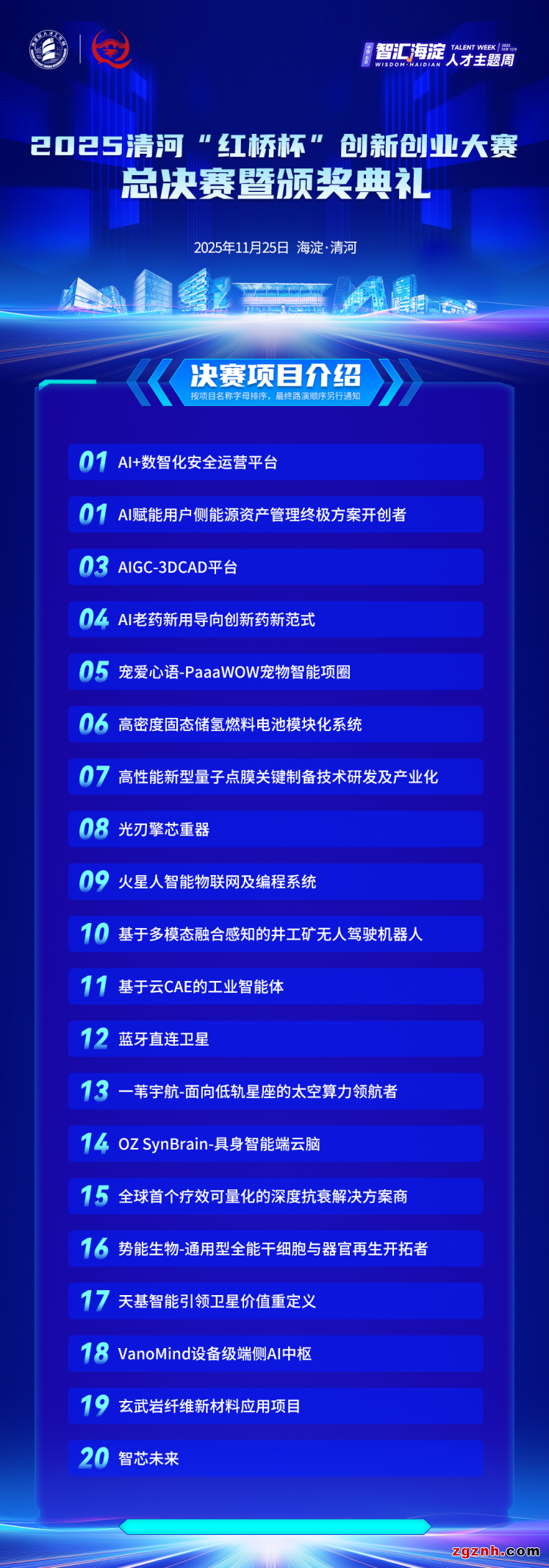 本屆大賽以“智匯清河 創(chuàng)見未來”為核心主題,堅(jiān)守公開、公平、公正原則,旨在集聚創(chuàng)新要素、吸引高層次人才落地。自啟動(dòng)征集以來,28天內(nèi)共收到全國200余個(gè)優(yōu)質(zhì)項(xiàng)目報(bào)名,經(jīng)20位投資機(jī)構(gòu)代表、行業(yè)專家及創(chuàng)業(yè)導(dǎo)師組成的專業(yè)評(píng)審團(tuán),通過線上初篩、初賽及復(fù)賽的多輪嚴(yán)苛遴選,最終20支成熟度高、應(yīng)用場景廣的頂尖團(tuán)隊(duì)脫穎而出,晉級(jí)總決賽。