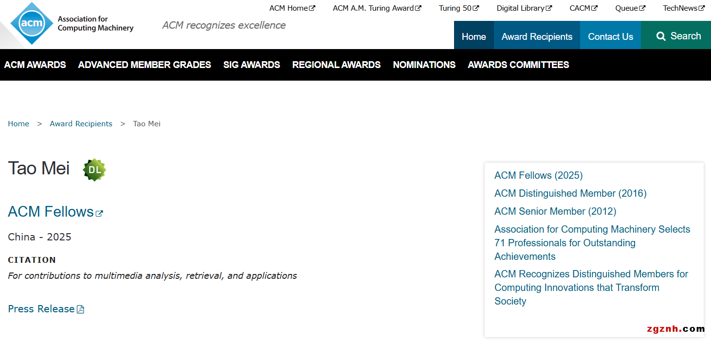 1月21日,國際計(jì)算機(jī)學(xué)會(Association for Computing Machinery,ACM)公布2025年度ACM Fellow名單,智象未來創(chuàng)始人兼首席執(zhí)行官梅濤博士成功當(dāng)選2025 ACM Fellow。