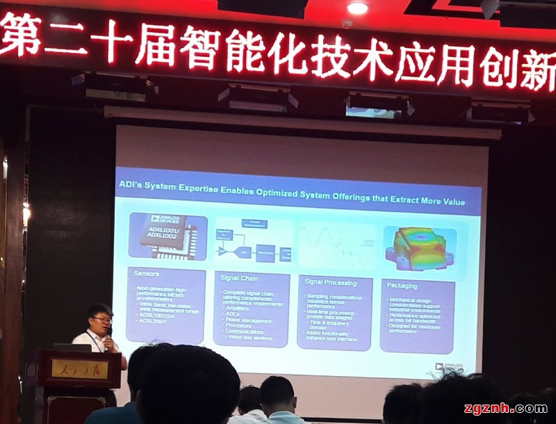 亞德諾半導(dǎo)體技術(shù)(上海)有限公司(ADI)市場部經(jīng)理于常濤首先上臺作“ADI設(shè)備狀態(tài)監(jiān)控解決方案”主題演講。他說,近年工業(yè)4.0和物聯(lián)網(wǎng)不斷推動產(chǎn)業(yè)升級,傳統(tǒng)的工業(yè)控制和工業(yè)自動化也向著智能化、安全、高效、節(jié)通、互聯(lián)的方向邁進,ADI致力于從這些方面為用戶提供差異化的解決方案,有效幫助設(shè)計工程師開發(fā)能效和產(chǎn)量最高的電機驅(qū)動和伺服控制系統(tǒng),提供豐富的連接解決方案,滿足最苛的安全標準,加快產(chǎn)品上市時間,助客戶在市場上占領(lǐng)一席之地。ADI是納斯達克上市企業(yè),數(shù)據(jù)轉(zhuǎn)換和信號處理技術(shù)全球領(lǐng)導(dǎo)廠商。于常濤先生的演講深入淺出,從他的演講中,我們看到了一個專心、專注、持續(xù)創(chuàng)新的ADI企業(yè)形象,值得在場的所有企業(yè)家、學(xué)者學(xué)習(xí)。