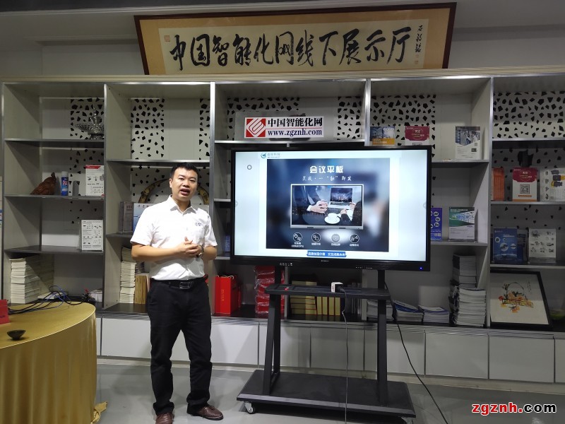 邁控張總介紹該公司會議屏