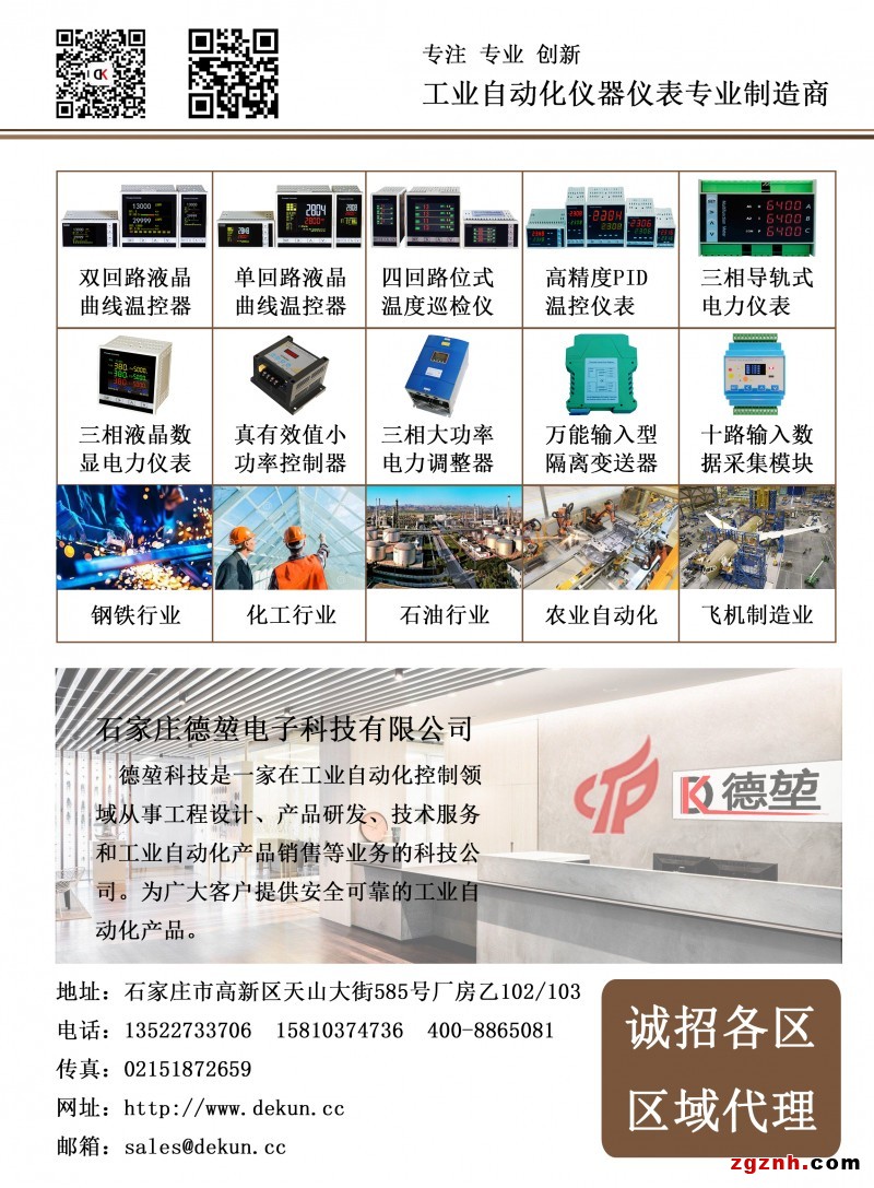 專業(yè)從事工業(yè)加熱電力調(diào)整器(調(diào)壓調(diào)功器)、數(shù)據(jù)采集模塊、隔離變送器、工業(yè)過程控制儀表的研發(fā)和生產(chǎn)。