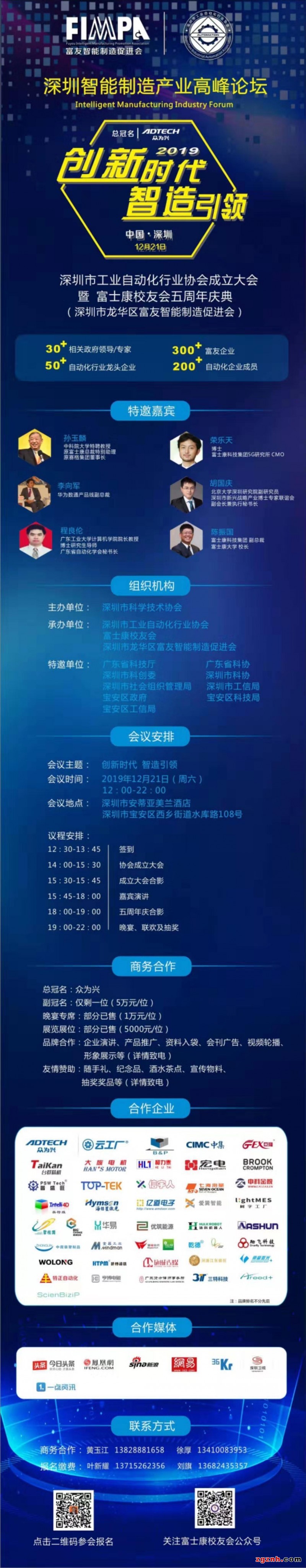 由深圳市科學(xué)技術(shù)協(xié)會(huì)主辦,深圳市工業(yè)自動(dòng)化行業(yè)協(xié)會(huì)、富士康校友會(huì)、深圳市龍華區(qū)富友智能制造促進(jìn)會(huì)共同承辦的“深圳智能制造產(chǎn)業(yè)高峰論壇、深圳市工業(yè)自動(dòng)化行業(yè)協(xié)會(huì)成立大會(huì)暨富士康校友會(huì)五周年慶典”(簡(jiǎn)稱:年會(huì))將于12月21(周六)13:30-21:00在深圳市安蒂亞美蘭酒店(深圳市寶安區(qū)西鄉(xiāng)街道水庫(kù)路108號(hào))隆重舉行。