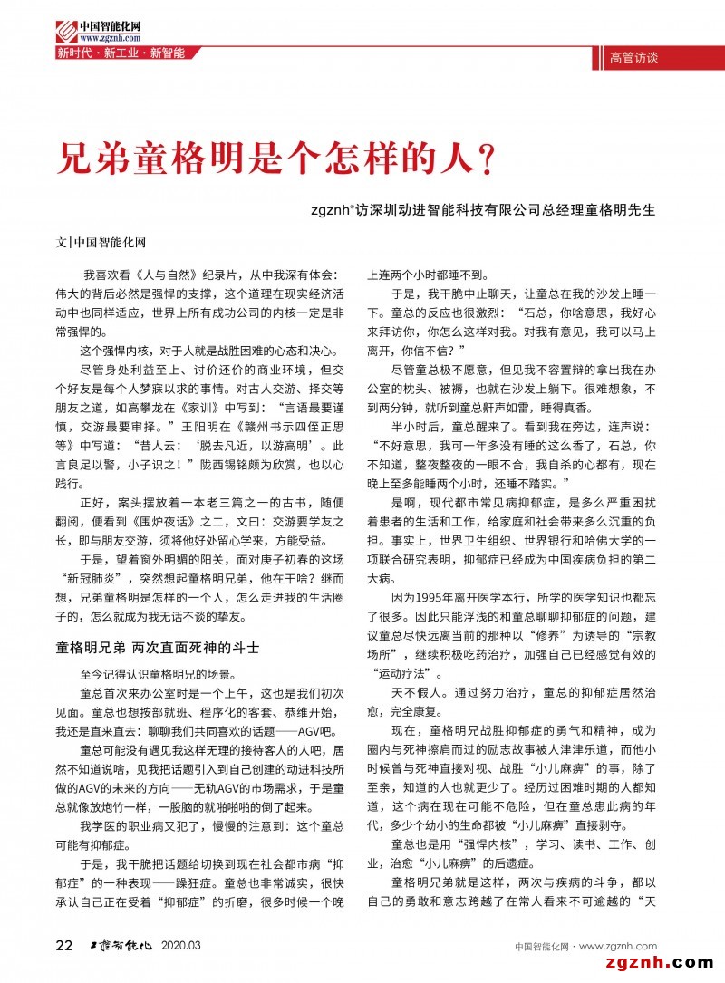 zgznh®訪深圳動進智能科技有限公司總經理童格明先生