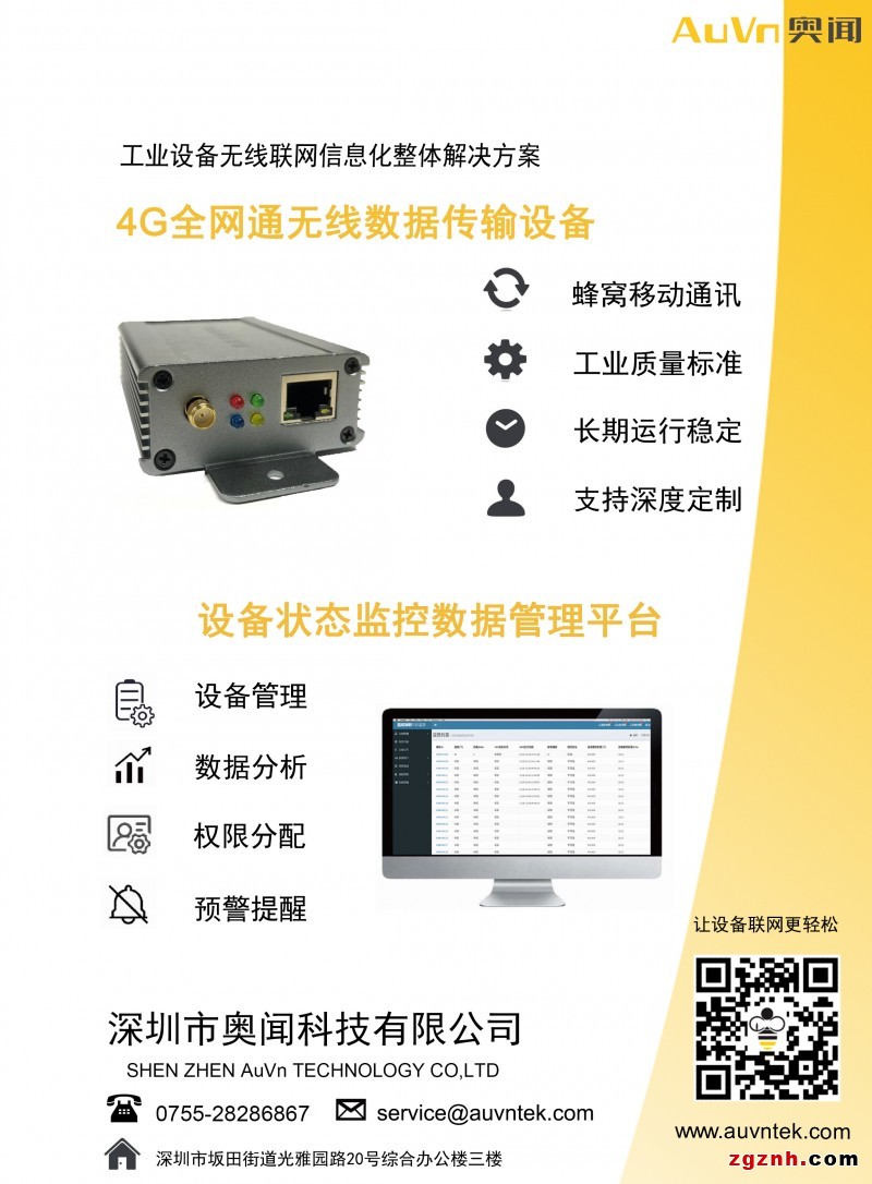 深圳市奧聞科技有限公司,專注基于4G/5G/NB-IOT主流蜂窩移動通訊技術(shù),為傳統(tǒng)設(shè)備提供信息化聯(lián)網(wǎng)方案和服務(wù),應(yīng)用于工業(yè)互聯(lián)網(wǎng)、智慧交通、智慧城市等領(lǐng)域。公司由一支多年從事移動通訊研發(fā)和項目實施經(jīng)驗的高級工程師隊伍組成,擁有完全自主知識產(chǎn)權(quán)的物聯(lián)網(wǎng)產(chǎn)品設(shè)計、研發(fā)、維護能力,成功申請多項發(fā)明專利、軟件著作權(quán)和商標(biāo)注冊權(quán)。公司以市場為導(dǎo)向、技術(shù)為核心,用專業(yè)和誠信贏得客戶信賴,助力物聯(lián)網(wǎng)產(chǎn)業(yè)落地。