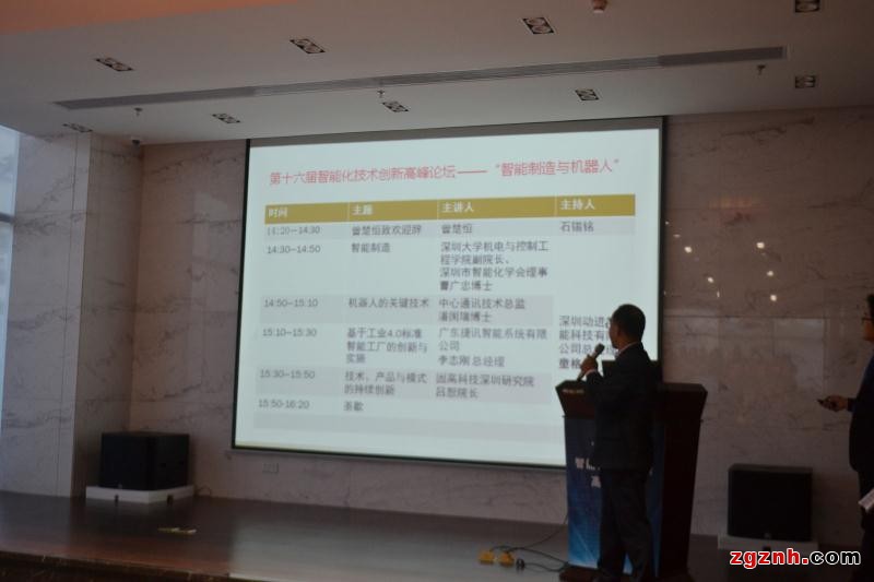 2015年12月18日下午,“第十六屆智能化技術(shù)創(chuàng)新高峰論壇——智能制造與機(jī)器人專題”于深圳市全至科技創(chuàng)新產(chǎn)業(yè)園隆重召開,全至科技創(chuàng)新園總經(jīng)理曾楚恒先生致開幕辭。