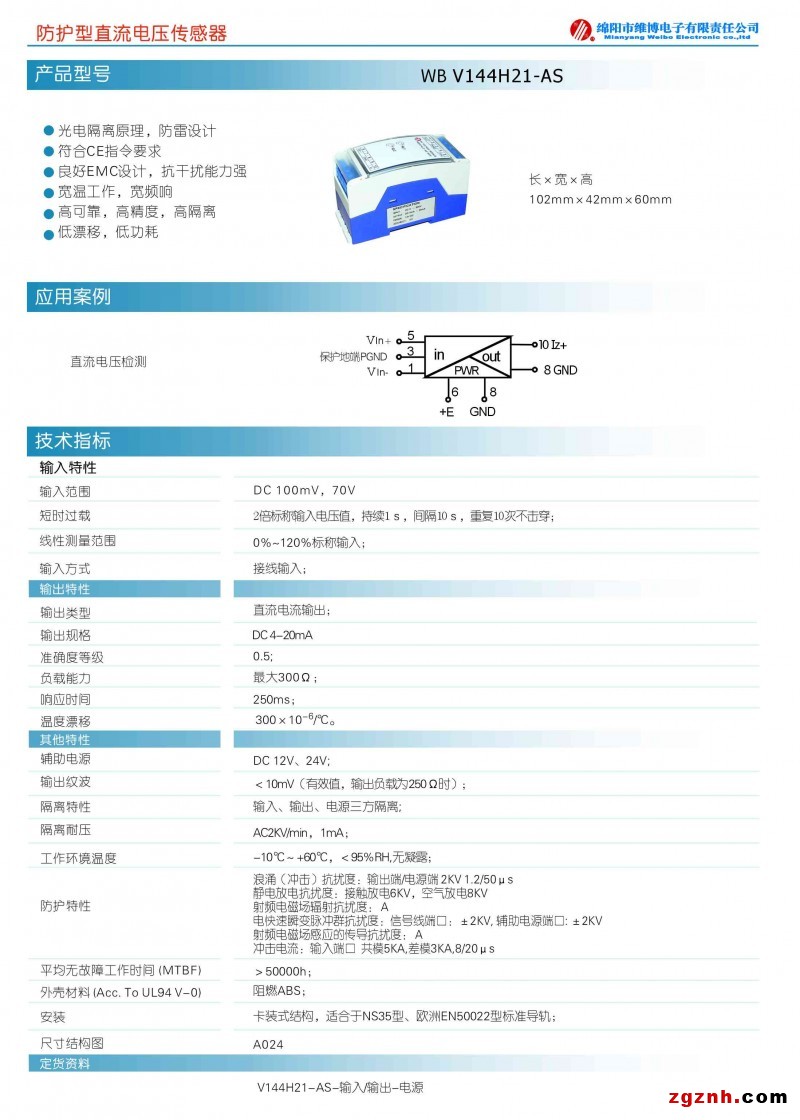 WB系列防護(hù)型傳感器是特制隔離模塊,通過(guò)增強(qiáng)EMC、防雷等設(shè)計(jì),為用戶提 供更加可靠、精確的實(shí)時(shí)監(jiān)控。產(chǎn)品具有高精度、高隔離,寬頻響、寬溫度范圍, 低溫漂、低功耗等特點(diǎn),適用于通訊局站內(nèi)各種動(dòng)力設(shè)備、空調(diào)設(shè)備的實(shí)時(shí)監(jiān)控, 保障電信系統(tǒng)的可靠運(yùn)行,以及工業(yè)控制現(xiàn)場(chǎng)的信號(hào)監(jiān)測(cè)等。