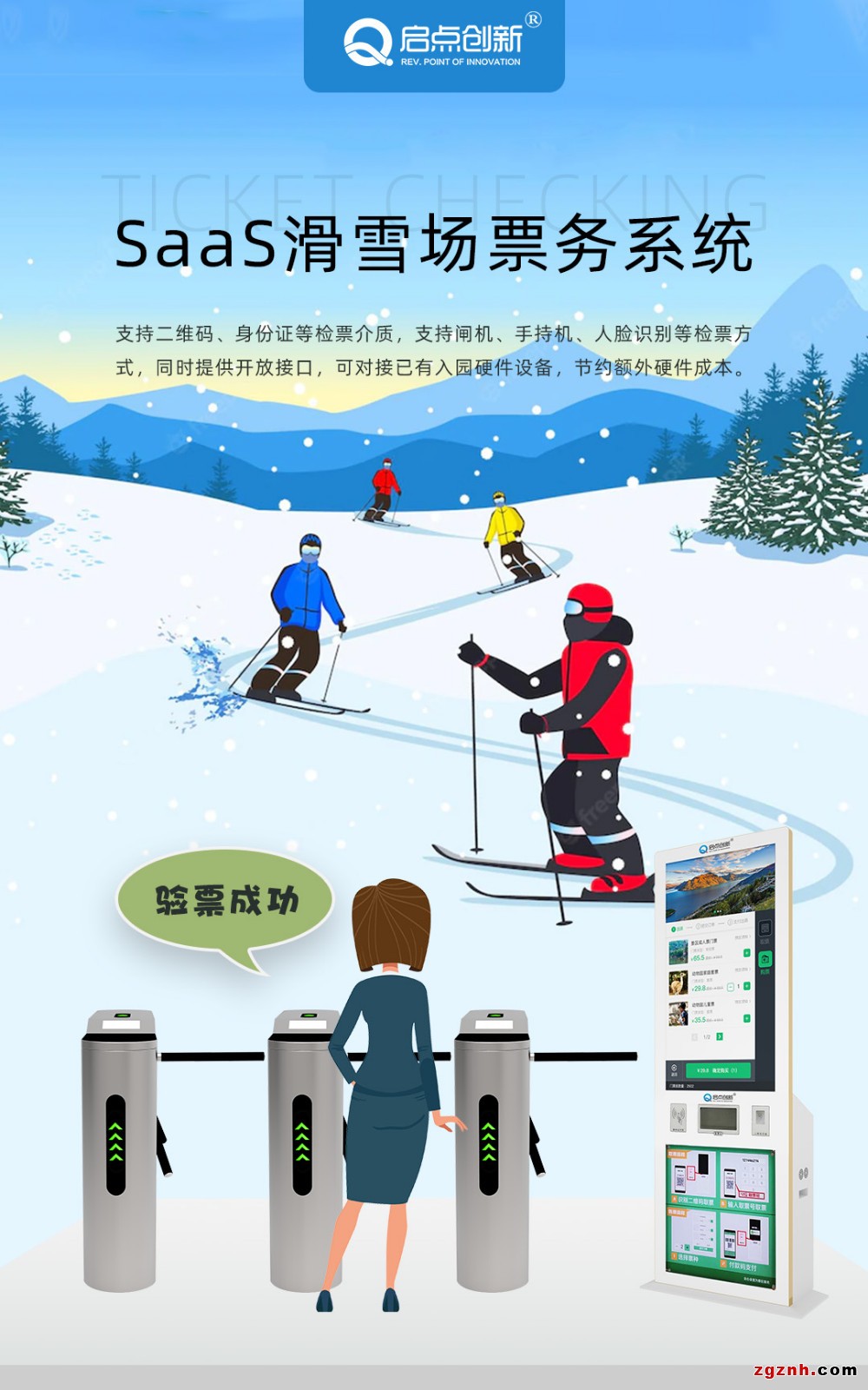 白山滑雪場(chǎng)雪具教練自助租賃退款管理系統(tǒng)門票掃碼刷卡驗(yàn)票通道閘