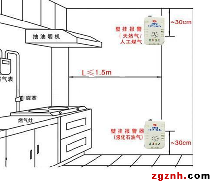燃?xì)鈭?bào)警器安裝示意圖如下